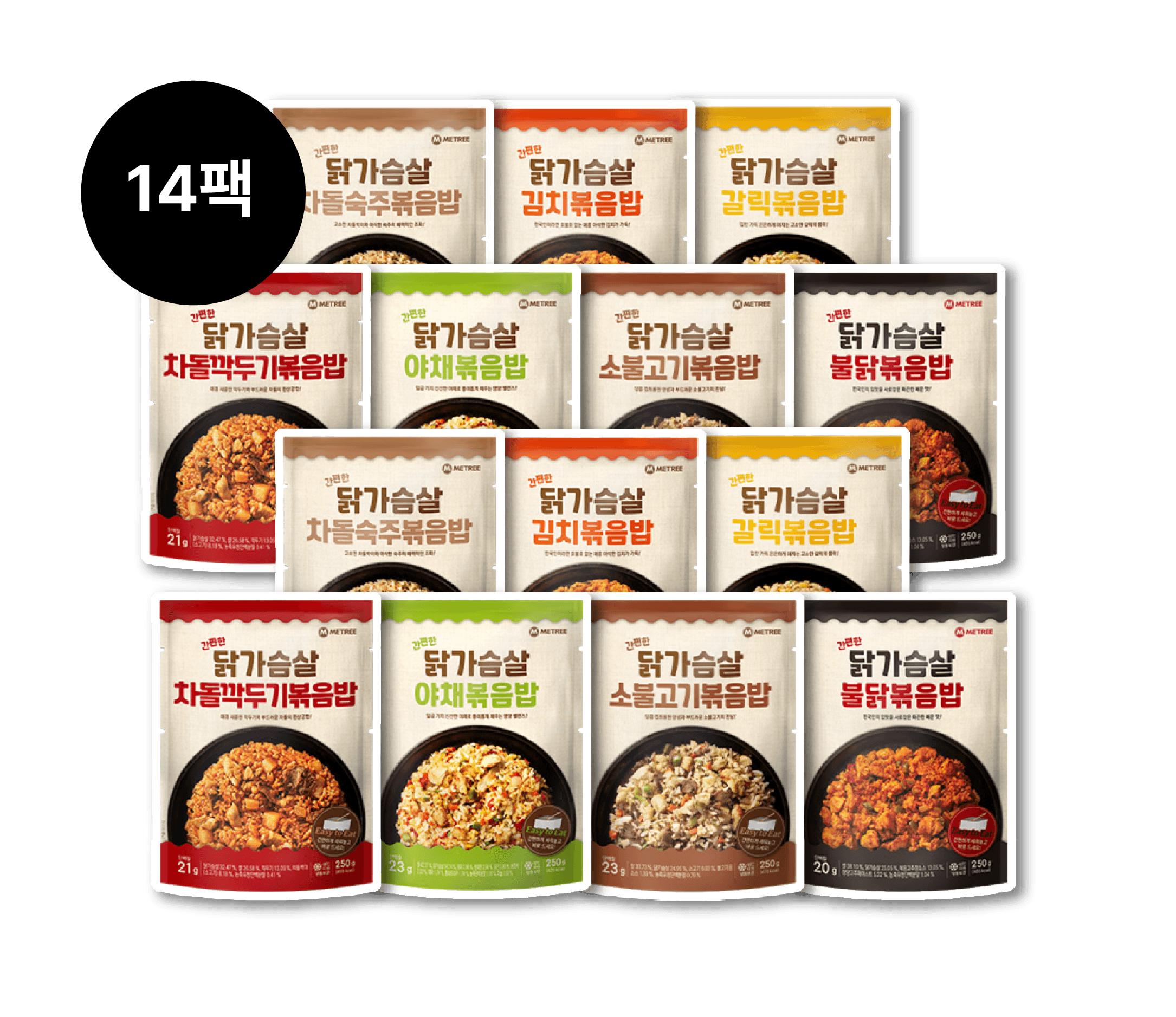๐๊ฐํธํ ๋ณถ์๋ฐฅ 14ํฉ SET ๊ฐํธํ ๋ญ๊ฐ์ด์ด ๋ณถ์๋ฐฅ 250g ๊ฐ๋ฆญ2, ๊น์น2, ์ผ์ฑ2, ๋ถ๋ญ2, ์๋ถ๊ณ ๊ธฐ2, ์ฐจ๋์์ฃผ2, ์ฐจ๋๊น๋๊ธฐ2