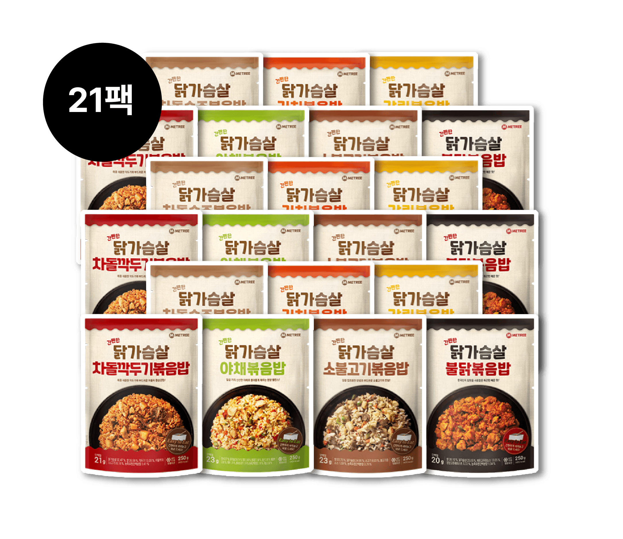 ๐๊ฐํธํ ๋ณถ์๋ฐฅ 21ํฉ SET ๊ฐํธํ ๋ญ๊ฐ์ด์ด ๋ณถ์๋ฐฅ 250g ๊ฐ๋ฆญ3, ๊น์น3, ์ผ์ฑ3, ๋ถ๋ญ3, ์๋ถ๊ณ ๊ธฐ3, ์ฐจ๋์์ฃผ3, ์ฐจ๋๊น๋๊ธฐ3