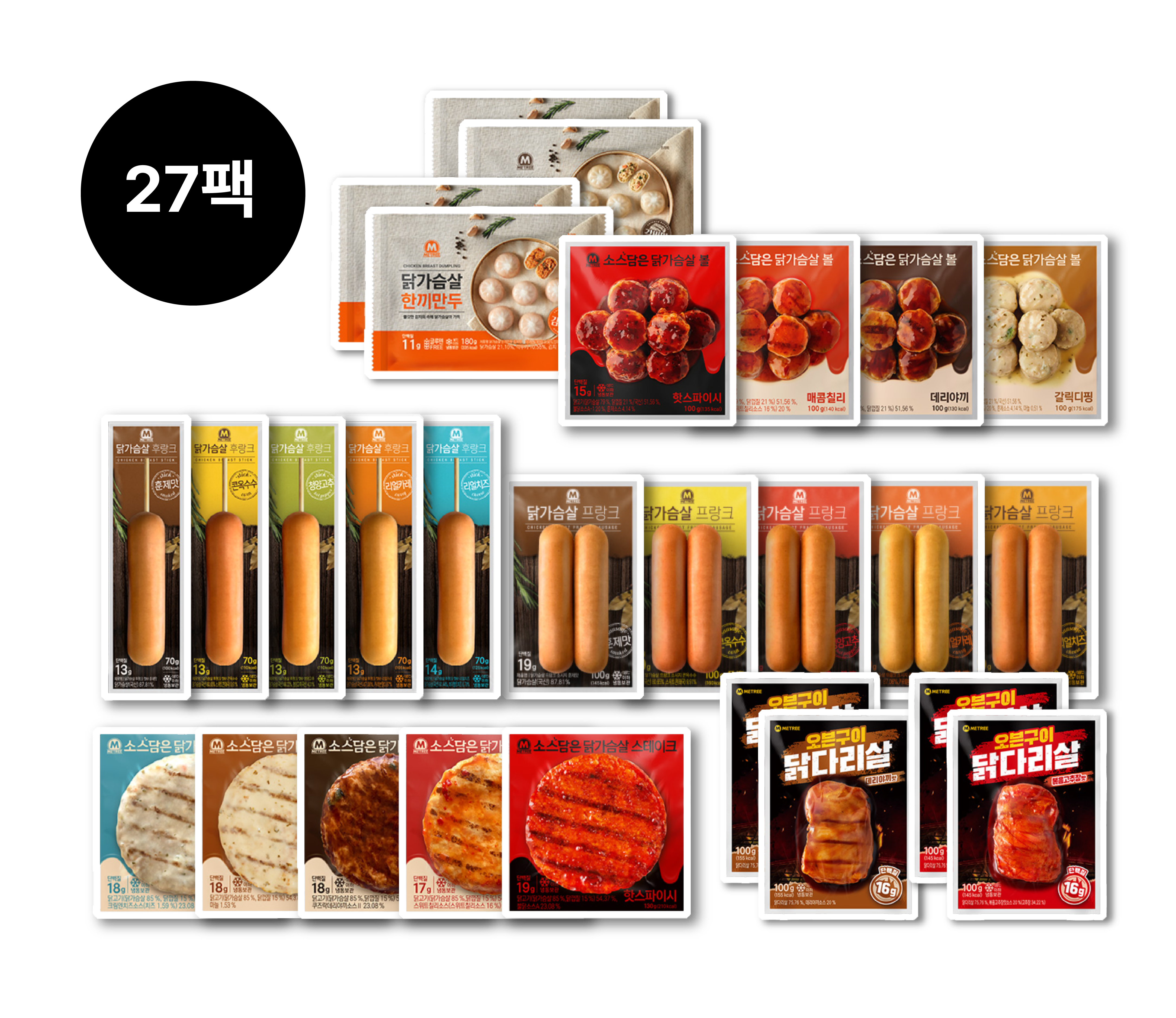 ์ดํฌ 130g 5ํฉ (๋ฐ๋ฆฌ์ผ๋ผ1, ๋งค์ฝค์น ๋ฆฌ1, ํฌ๋ฆผ์น์ฆ1, ๊ฐ๋ฆญ๋ํ1, ํซ์คํ์ด์1) ์ค๋ธ๊ตฌ์ด ๋ญ๋ค๋ฆฌ์ด 100g 4ํฉ (๋ฐ๋ฆฌ์ผ๋ผ๋ง2, ๋ณถ์๊ณ ์ถ์ฅ๋ง2) ํ๋ผ๋ง๋ 180g 4ํฉ (๊ฐ๋น2, ๊น์น๋ง2)